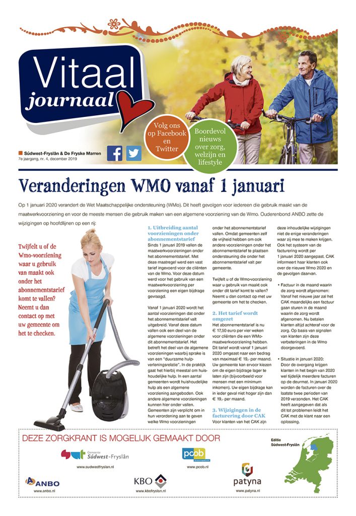 Naast patientencommunicatie is ons bedrijf de laatste tien jaar eveneens actief in seniorencommunicatie. Onder de naam Vitaal Journaal geven wij in diverse regio’s kwartaalmedia uit die gesegmenteerd huis-aan-huis worden verspreid. Ook realiseren we titels in opdracht van thuiszorg- en ouderenkoepels.